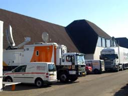 会場の周りはTV関係、雑誌の車が沢山駐車しています。